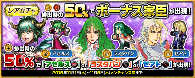 レアガチャ 皇帝 戦士排出時50 でボーナス家臣 キャンペーン開始