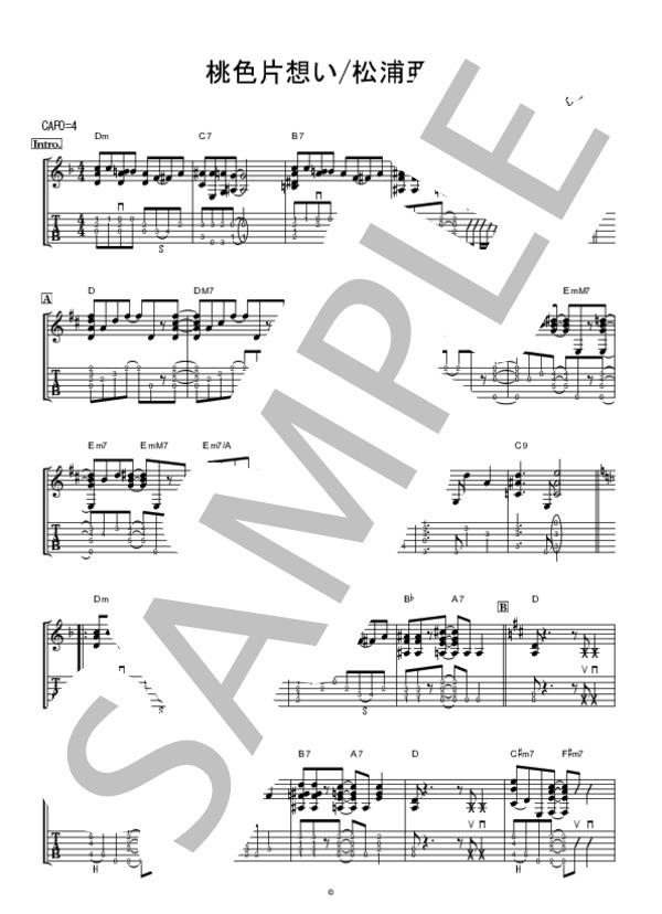 桃色片想い 松浦 亜弥 ギター弾き語り 上級 伴奏屋tab譜