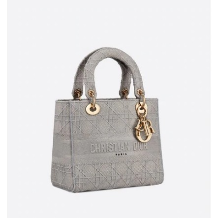 Medium Lady D Lite Bag Gray Cannage Embroidery Bags Woman Dior