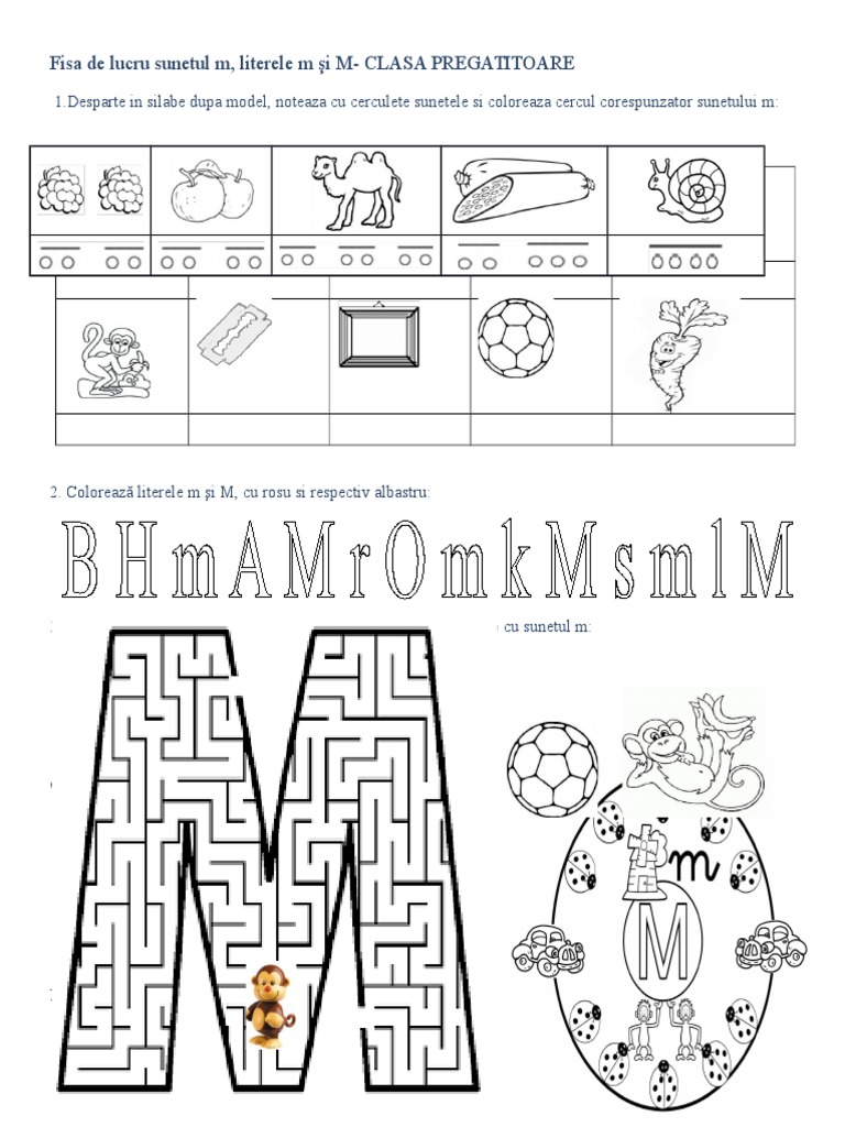 Fișă De Lucru Sunetul și Literele M și M Clasa Pregătitoare Fișe De Lucru Sunet Versuri