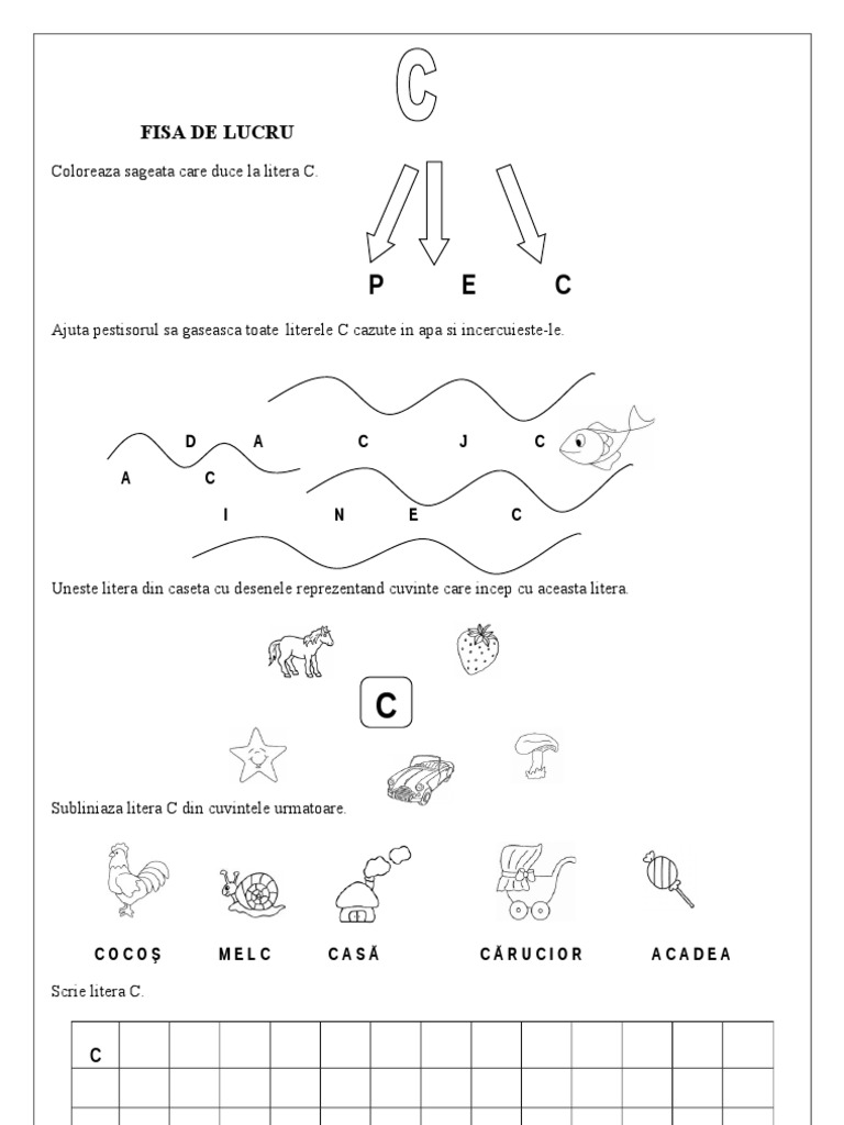 Clasa Pregatitoare Fisa De Lucru Pentru Sunetul Si Litera C