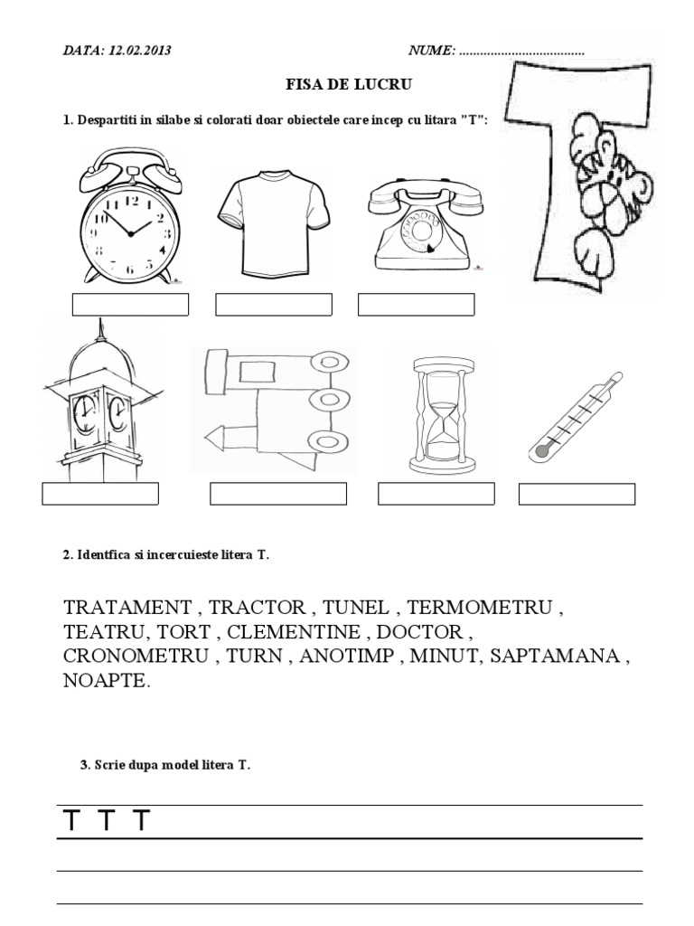 Fișă De Lucru Sunetul și Literele T și T Clasa Pregătitoare
