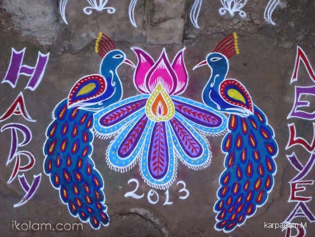 Mungita Muggulu Peacocks Welcomes Happy New Year Kolam
