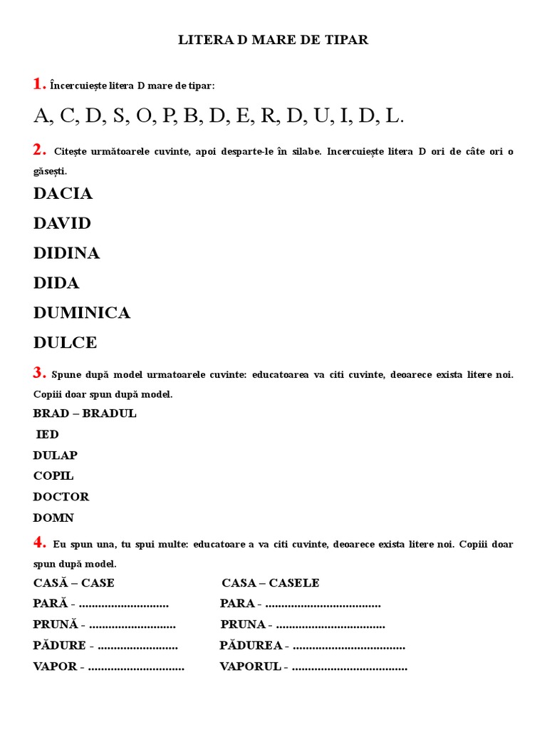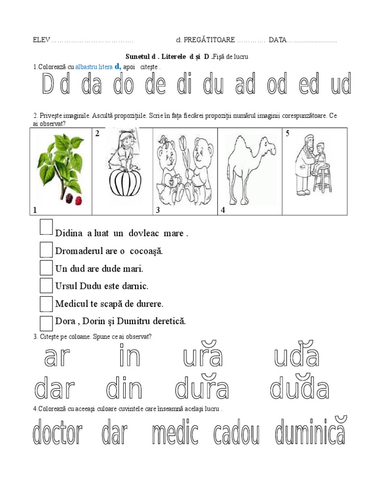 Sunetul Si Litera D Mic De Tipar