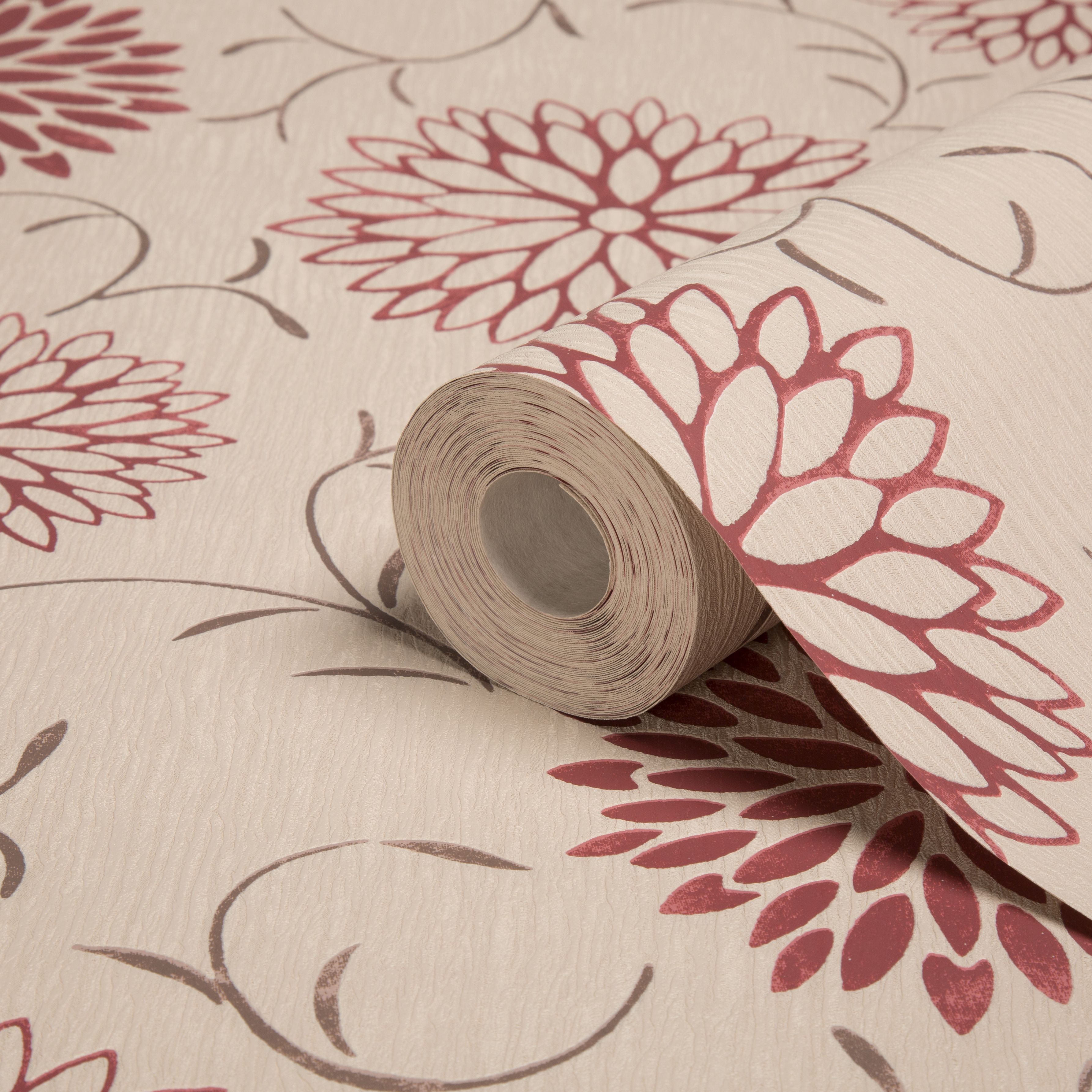 B Q Lexie Red Floral Wallpaper Departments Diy At B Q