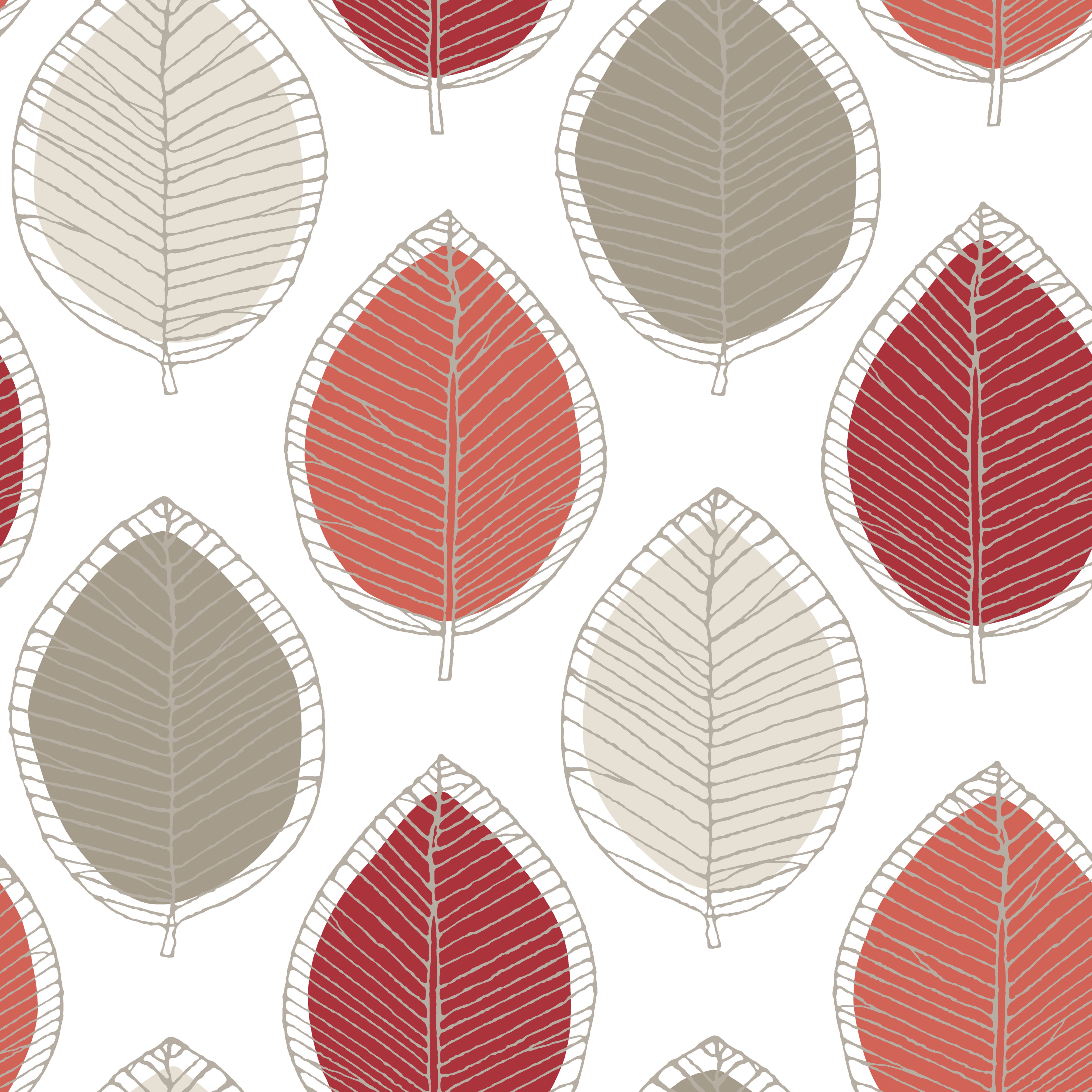 Arthouse Opera Beige Cream Red Sketched Leaf Wallpaper