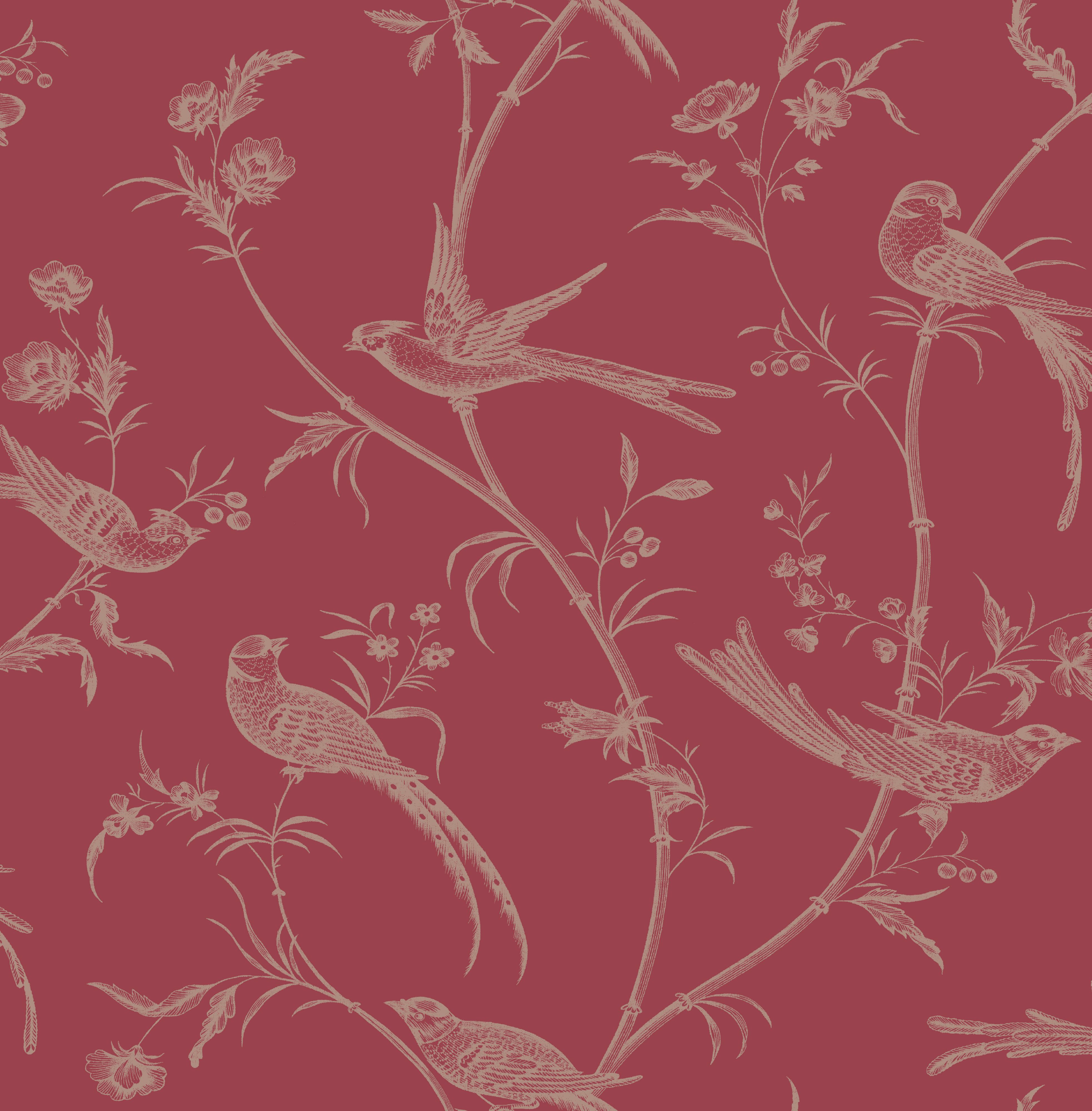 Colours Alberta Red Floral With Birds Metallic Effect Smooth