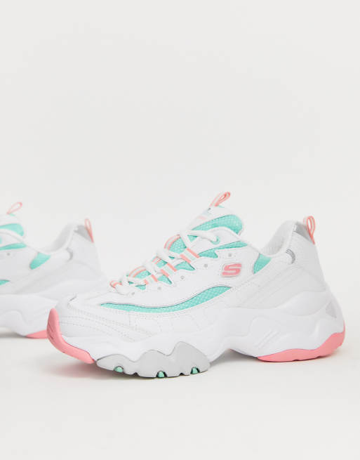 Skechers D Lites 3 0 Blast Chunky Trainer In White And Pink Asos