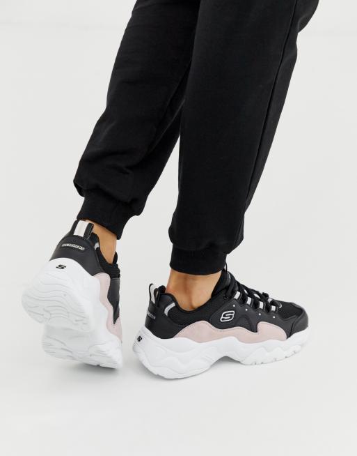 Skechers D Lites 3 0 Zenway Chunky Sneaker In Black And Pink Asos