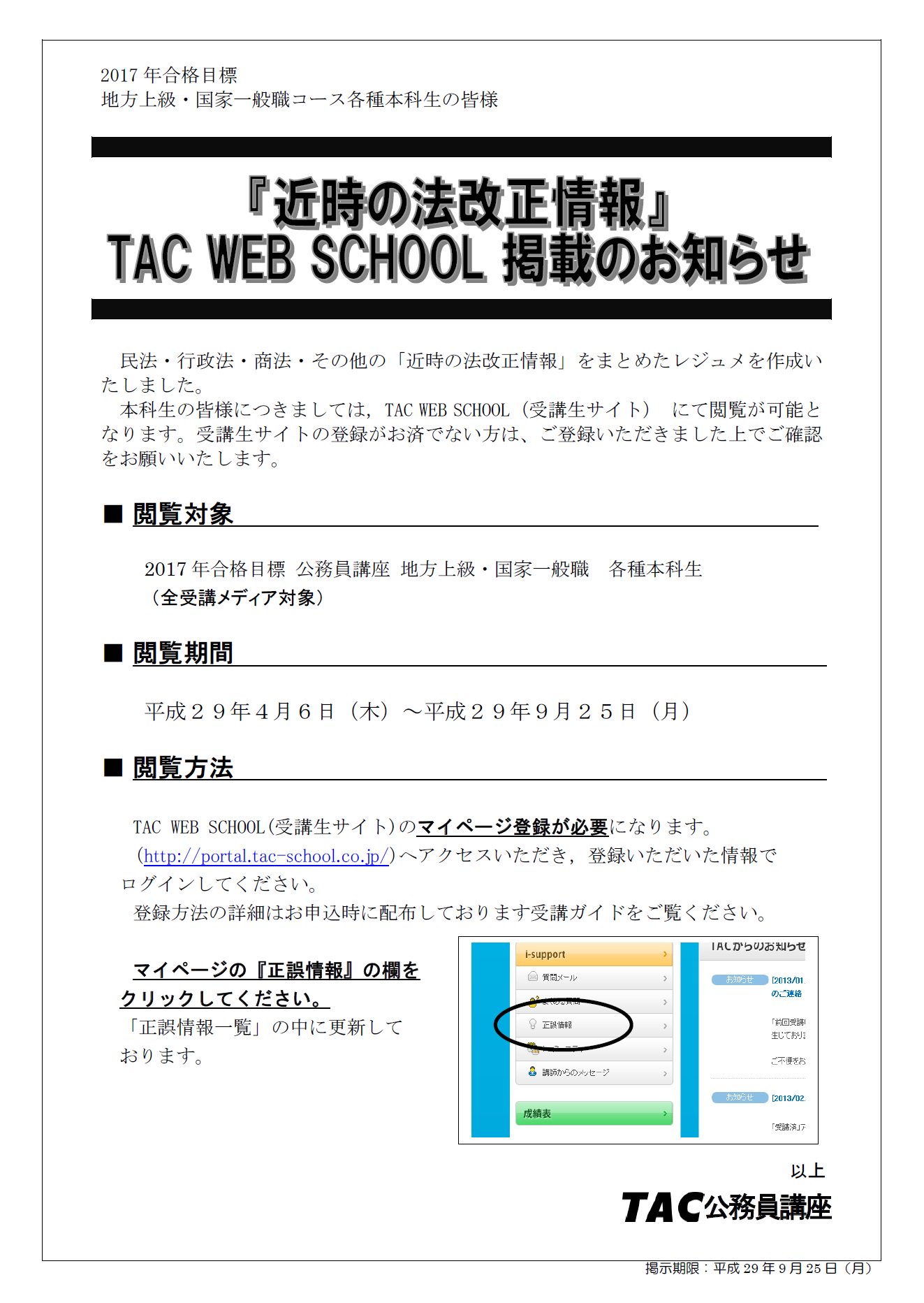2017年公務員 近時の法改正情報アップのお知らせ tac福岡校の